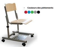 Chaise mobile à hauteur réglable, adaptée aux tailles T4 (38 cm) à T6 (46 cm), idéale pour un usage scolaire.