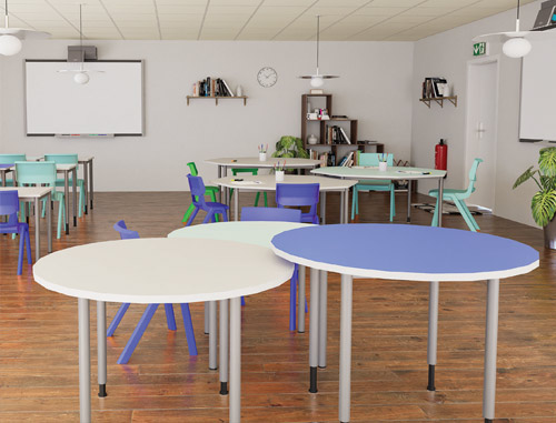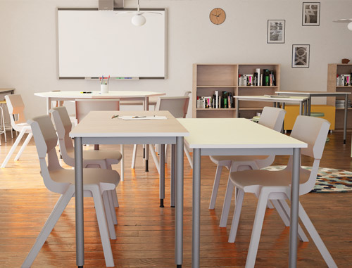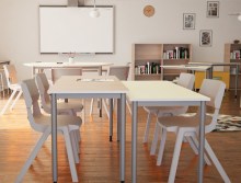 La gamme “Lotus” se décline en tables de forme : carrée, rectangle, ronde, demi-lune, trapézoïdale, ou octogonale, permettant de moduler l’espace en fonction des besoins...