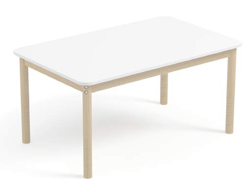 Table épurée : son plateau en aggloméré laminé HPL la rend très résistante aux rayures et aux chocs et ses angles arrondis sont sans danger pour les plus petits.• Plateau en aggloméré stratifié HPL couleur hêtre (épaisseur : 18 mm)