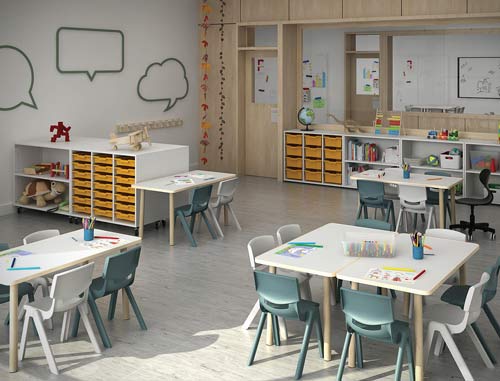 Table maternelle en bois réglable en hauteur de T0 (40 cm) à T3 (59 cm)