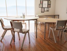 La gamme “Lotus” se décline en tables de forme : carrée, rectangle, ronde, demi-lune, trapézoïdale, ou octogonale, permettant de moduler l’espace en fonction des besoins...