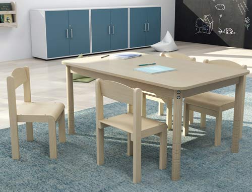Table maternelle en bois réglable en hauteur de T0 (40 cm) à T3 (59 cm)