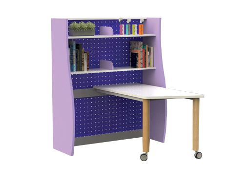 • Le poste de travail Minilab avec panneau d’intimité répond à la nécessité de créer un coin de travail bien identifié et séparé, déjà équipé d’une table et d’étagères.